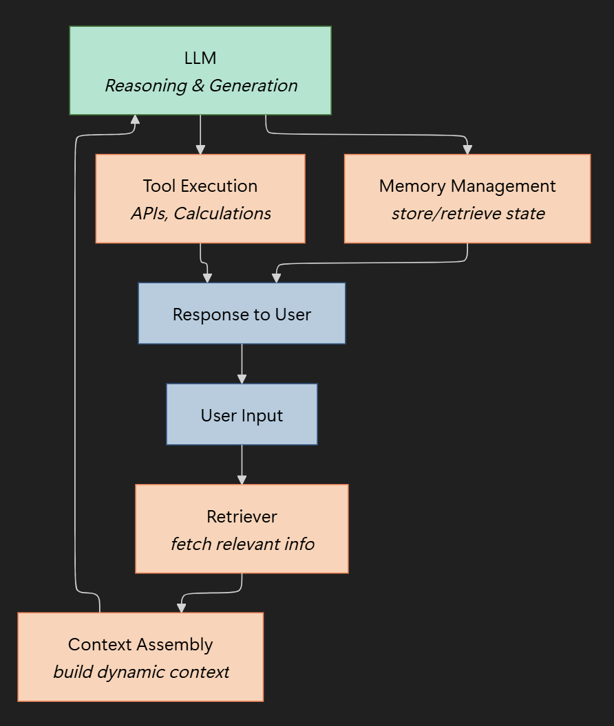 - LLMs: Used for reasoning, language understanding, and synthesis.