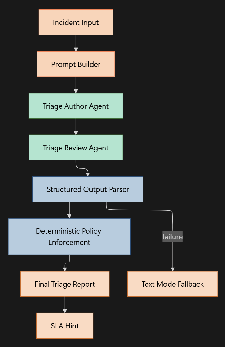 var policyAdjusted = TriagePolicyEnforcer.Apply(incidentInput, typedResponse);